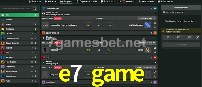 O e7 game oferece uma grande seleção de opções de apostas em e-sports com probabilidades competitivas